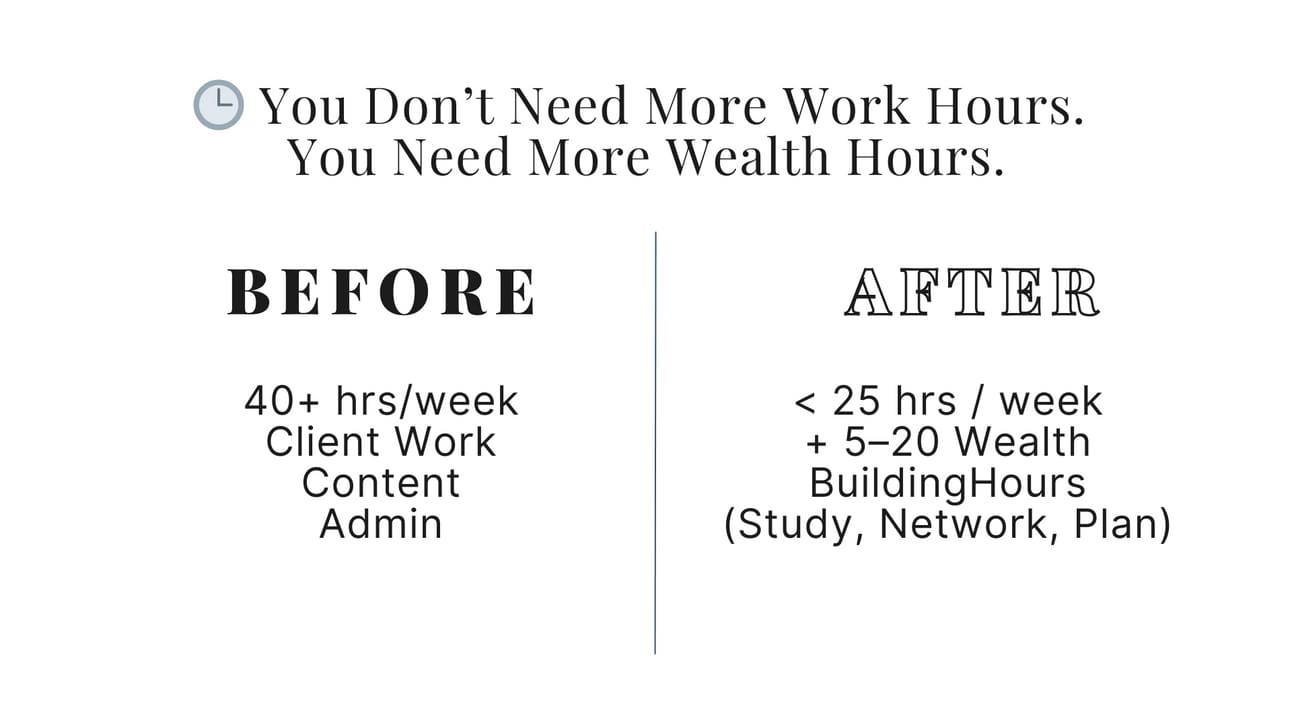 What can be delegated, paused, or eliminated to open up just 5–10 “Wealth Hours” a week? Use that time to study, network, or plan your next wealth-building move.